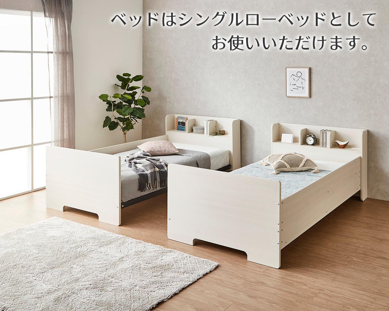 上段下段ともにシングルベッドに分割が可能でお子様の成長とともに長くご使用いただけます。